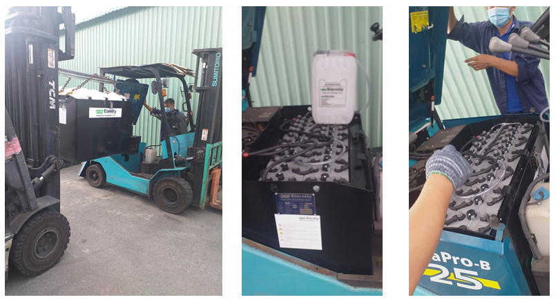 Hình ảnh lắp ắc quy Eternity 48V/560Ah dùng cho xe nâng điện Sumitomo 2.5 tấn
